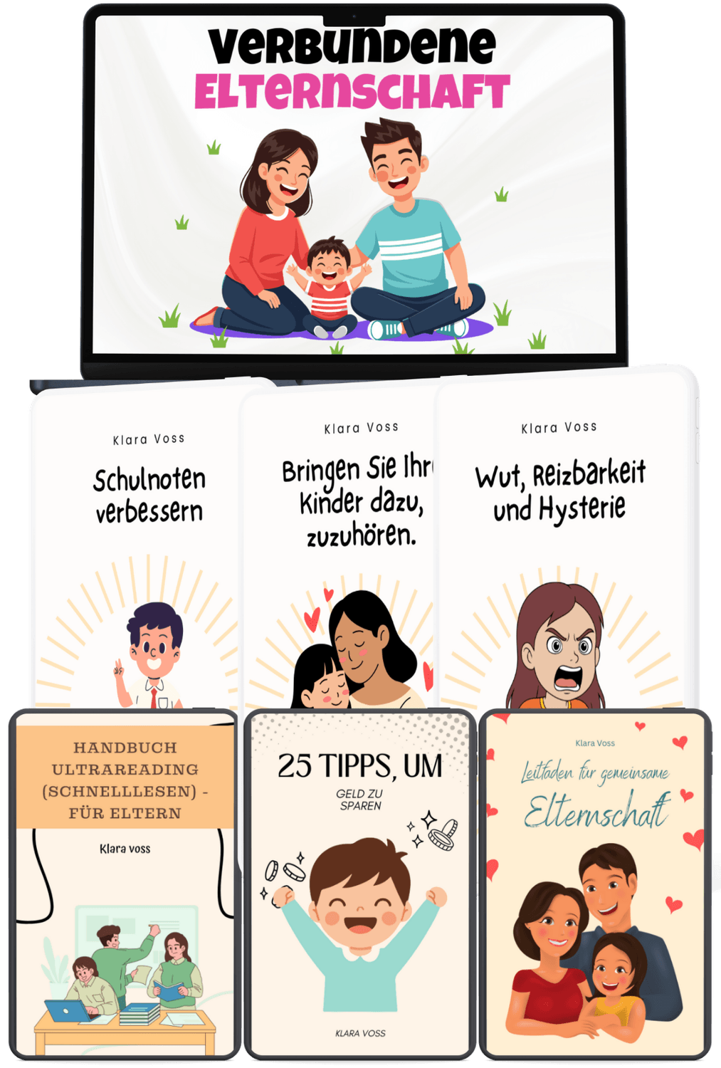 Darin finden Sie 12 vollständige Ratgeber, die die wichtigsten Herausforderungen abdecken, denen Eltern begegnen.